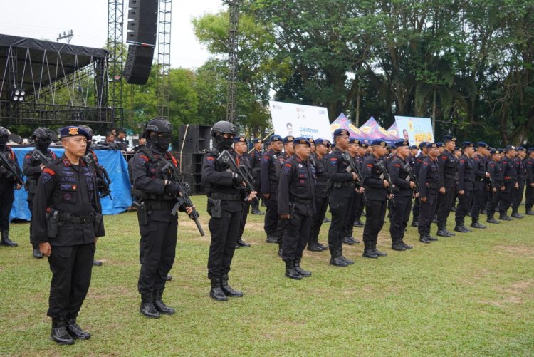 Personel Satuan Brimob Polda Riau sebanyak 1 Kompi untuk pam Pacu jalur tahun 2025 pengamanan semaksimal mungkin agar berjalan dengan aman dan kondusif hingga penutupan.
