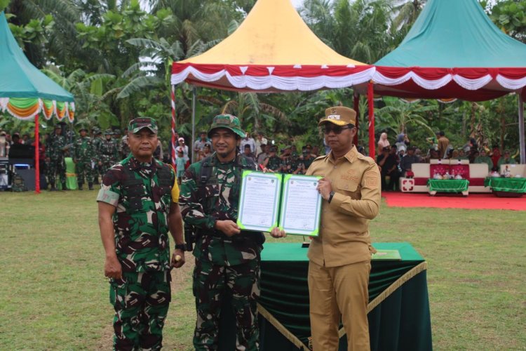 Upacara penutupan TMMD dipimpin oleh Danrem 031/WB Brigjen TNI Sugiyono bertempat di lapangan sepak bola jalan pendidikan dengan secara resmin di tutup.